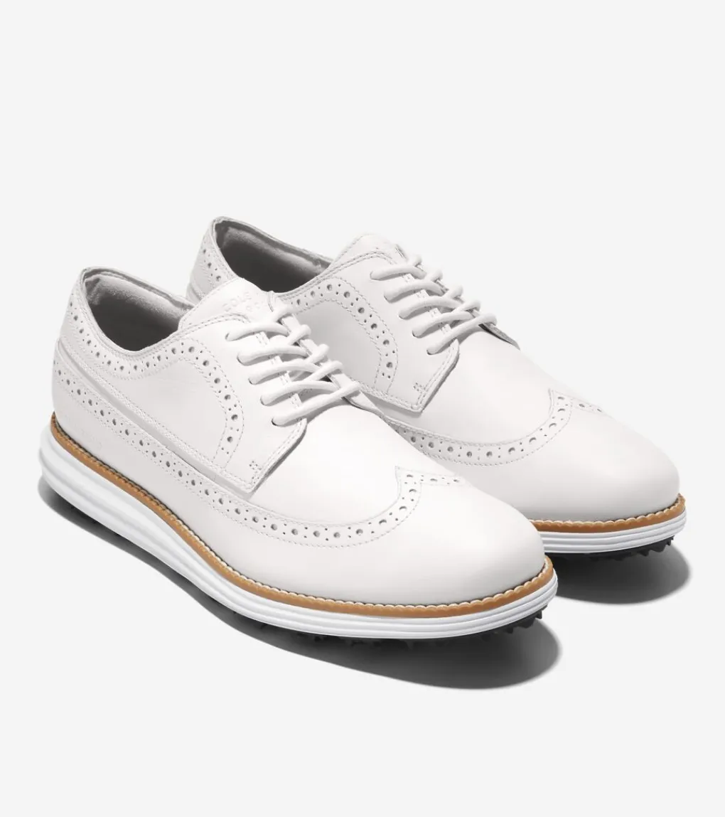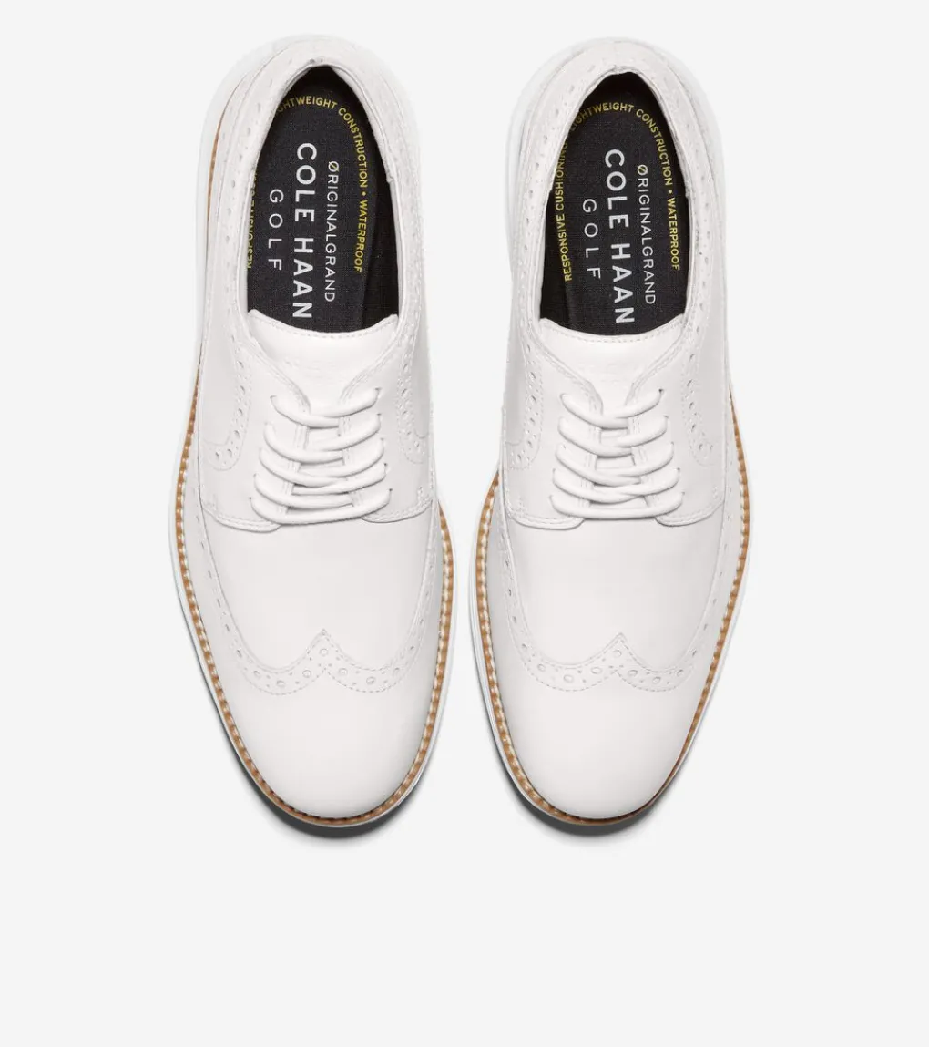 The good looks of a classic golf shoe plus the comfort of 21st-century materials: ØriginalGrand Wingtip Oxford Golf, featuring a brogued leather lace-up built with a cushioned, molded footbed, a lightweight EVA midsole, moisture-wicking lining, and spikeless rubber traction.