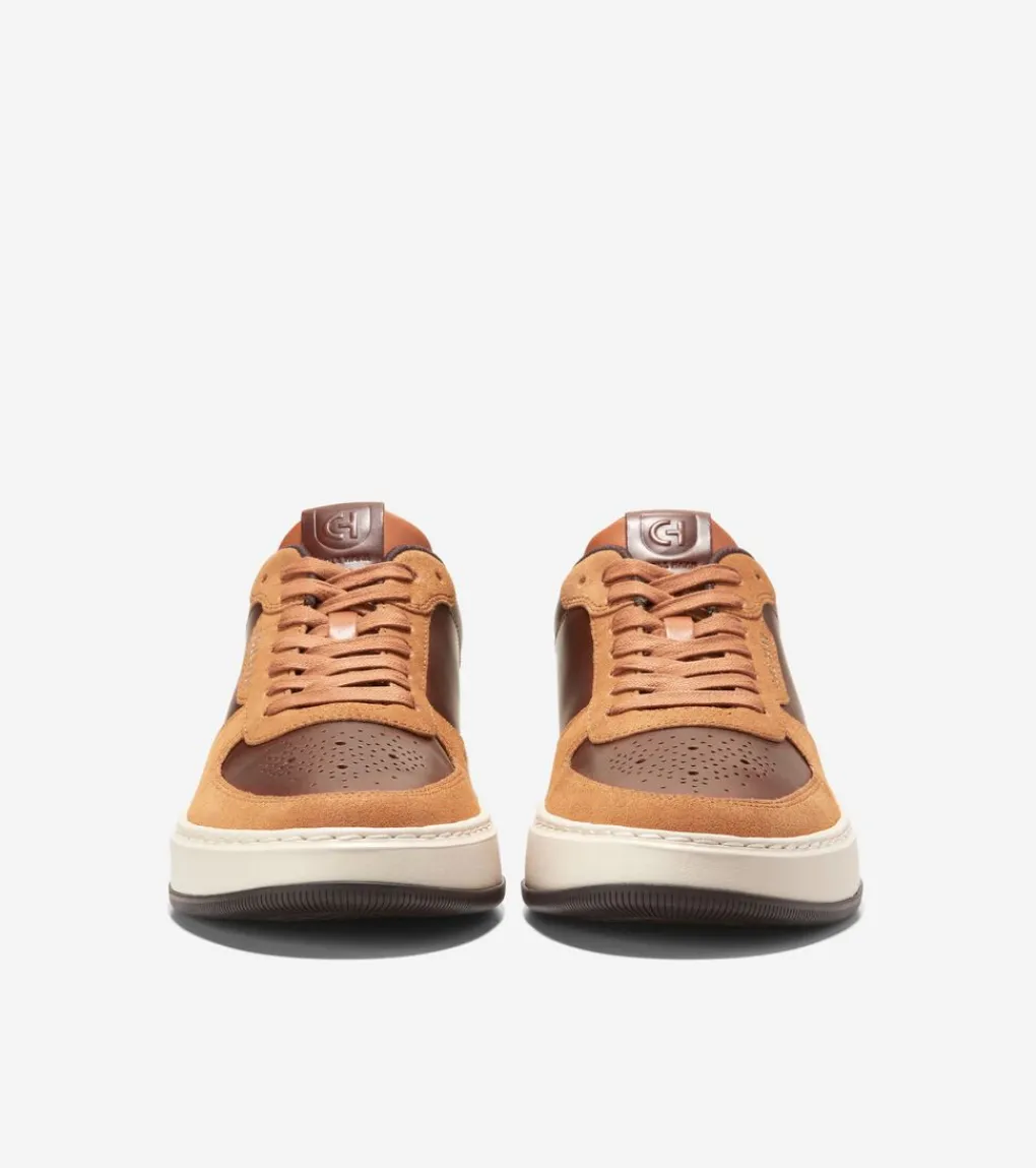 Crossing from sneaker to dress shoe and back again: Our GrandPrø Crossover Sneaker combines the latest in lightweight, luxury-inspired cushioning systems with a leather upper that uses dress shoe-style broguing for forefoot ventilation.