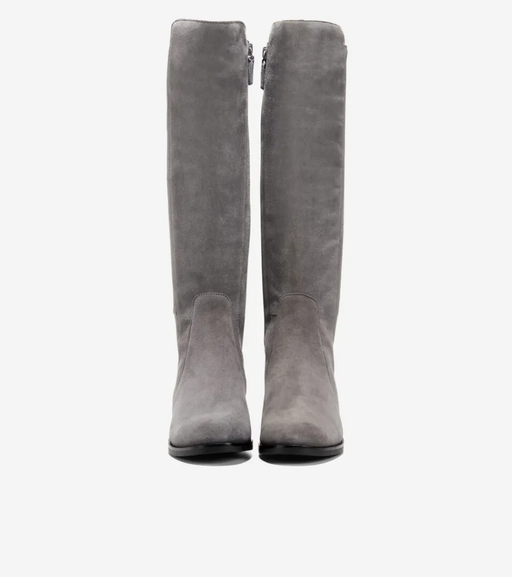 Nothing beats a well-made tall boot to complement everything from dresses to denim. Crafted from soft leather with stretch back for easy on/on, this pair features clean lines, a rounded toe, and a luxuriously cushioned GRANDFØAM footbed.