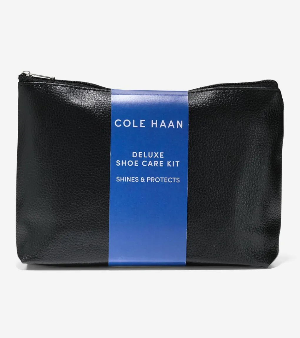 This kit is an excellent starter kit for anyone purchasing Cole Haan footwear. The leather pouch contains three colors of shoe cream (Black, Neutral and British Tan), an applicator brush, buffing brush, cloth, and an instant shine sponge. All items are less than 3 oz and are airport security-friendly. Kit measures 6″ x 8″ x 2″.