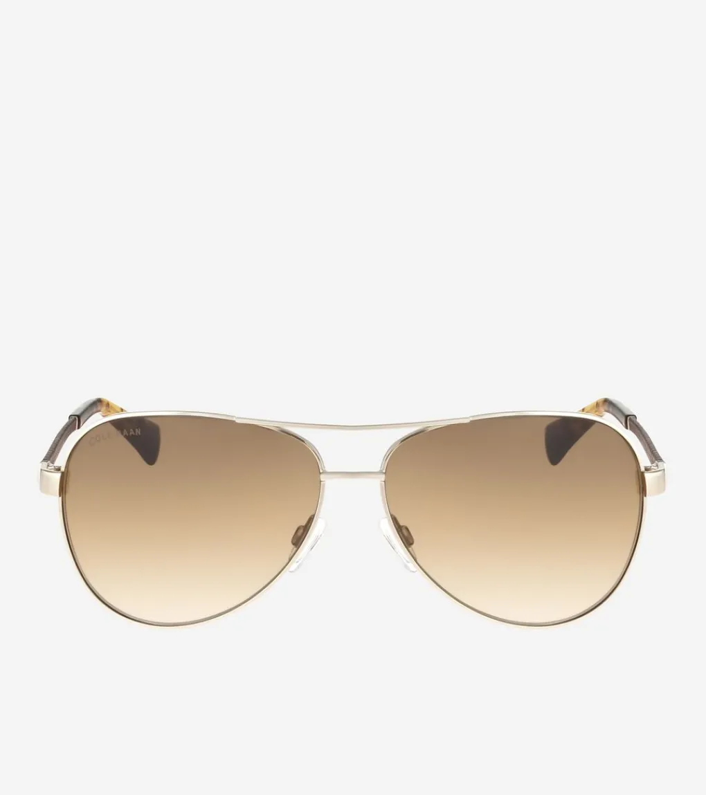 Women Cole Haan SUNGLASSES|SUNGLASSES^Metal-Leather Aviator Sunglasses
