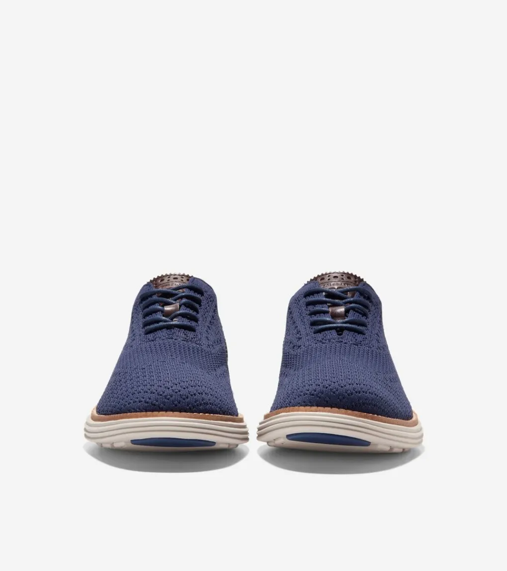 Taking wingtip dress shoes as our inspiration, we reimagined every detail of our ØriginalGrand Remastered Stitchlite™ Oxford. To create a lighter-weight upper, we used a version of our stretchy, supportive, and sustainable Stitchlite™ knit that incorporated 70 percent recycled fiber. Then we paired that fully detailed lace-up with a sneaker-style midsole engineered for extra cushioning and support.