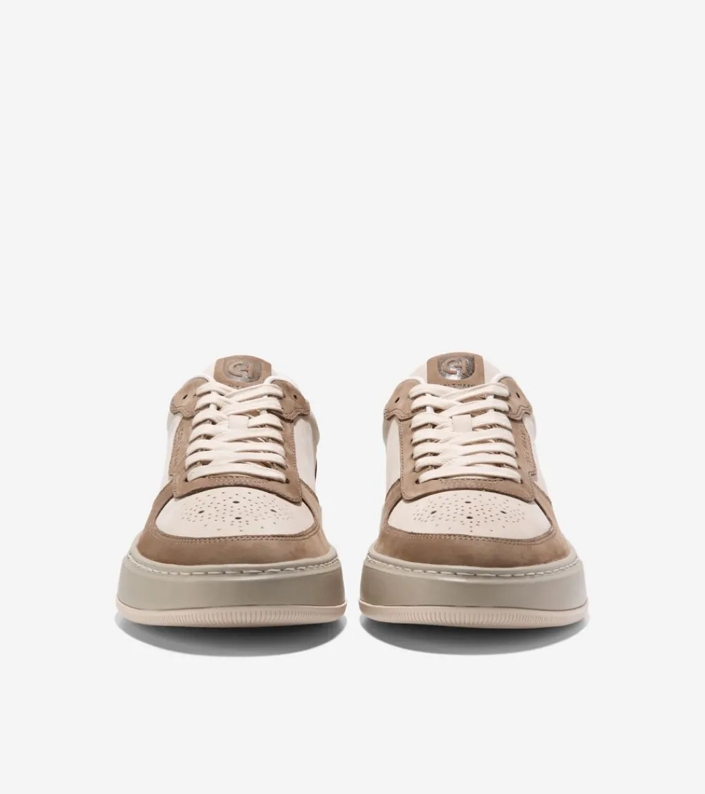 Crossing from sneaker to dress shoe and back again: Our GrandPrø Crossover Sneaker combines the latest in lightweight, luxury-inspired cushioning systems with a nubuck upper that uses dress shoe-style broguing for forefoot ventilation.