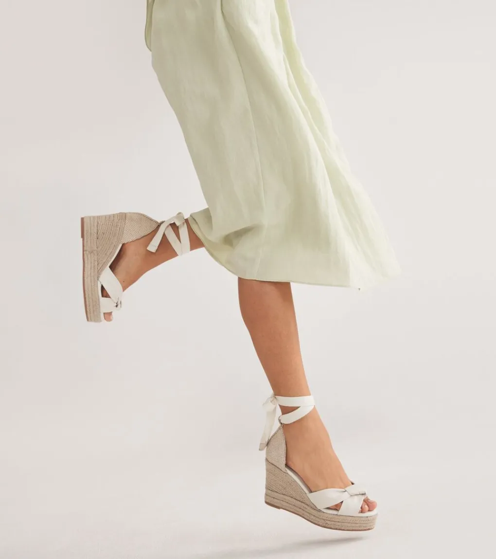 Add a touch of glam to your look with the Cloudfeel Hampton Wedge Sandal—an instant sunny day hit. Featuring a classic woven jute wedge, and top knot detail, these sandals effortlessly complement everything from jeans to dresses. The playful ribbon-tied ankle adds a feminine touch while providing a secure and adjustable fit.