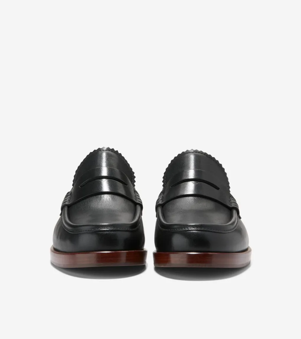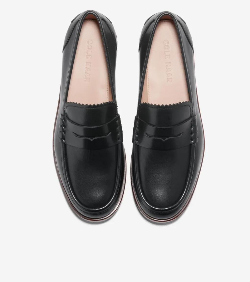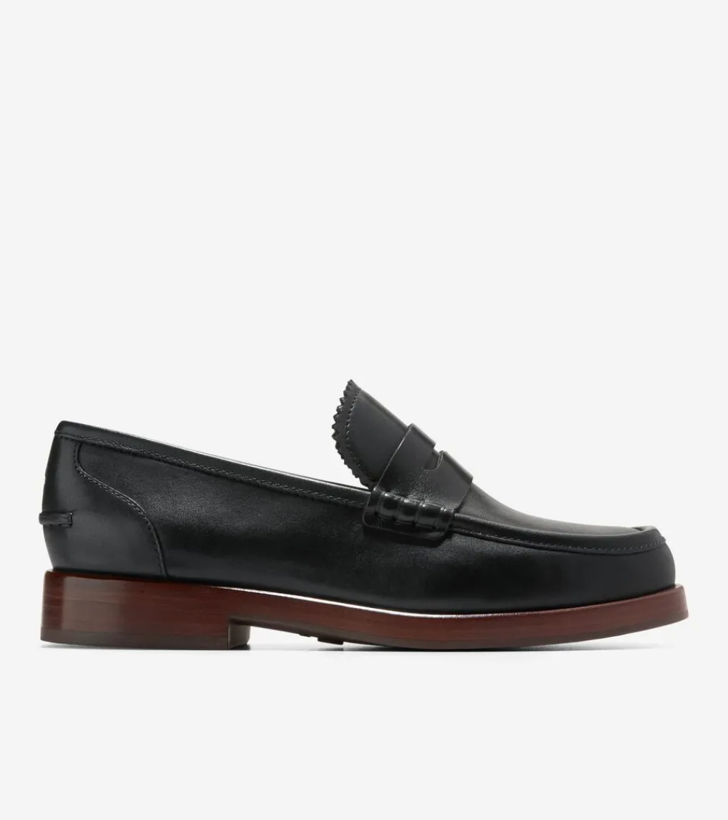 Iconic style meets modern sophistication in the Christyn Penny Loafer. Vintage-inspired pinking details at the topline and a classic penny keeper with box stitch detail add an utterly charming touch to this prep icon. This effortless penny loafer combines heritage craftsmanship with feminine details and a modern stacked heel for a fresh take on tradition.